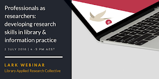 With only a couple of days left till LARK’s webinar, it’s time to reveal the details of an action-packed hour. It is a perfect coincidence that ALIA decided to launch its LIS Practitioner Research Specialisation on Monday. Judy Brooker, Director of Learning at ALIA has kindly agreed to give us a sneak peak of this exciting development.